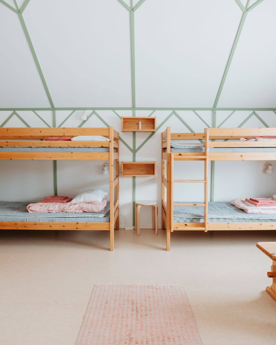 Hotelli Niilanpään neljän hengen huoneessa on kerrossängyt, joiden alapeti on 120cm ja yläpeti 80cm leveät. Kiilopään Hotelli Niilanpään hotellihuone