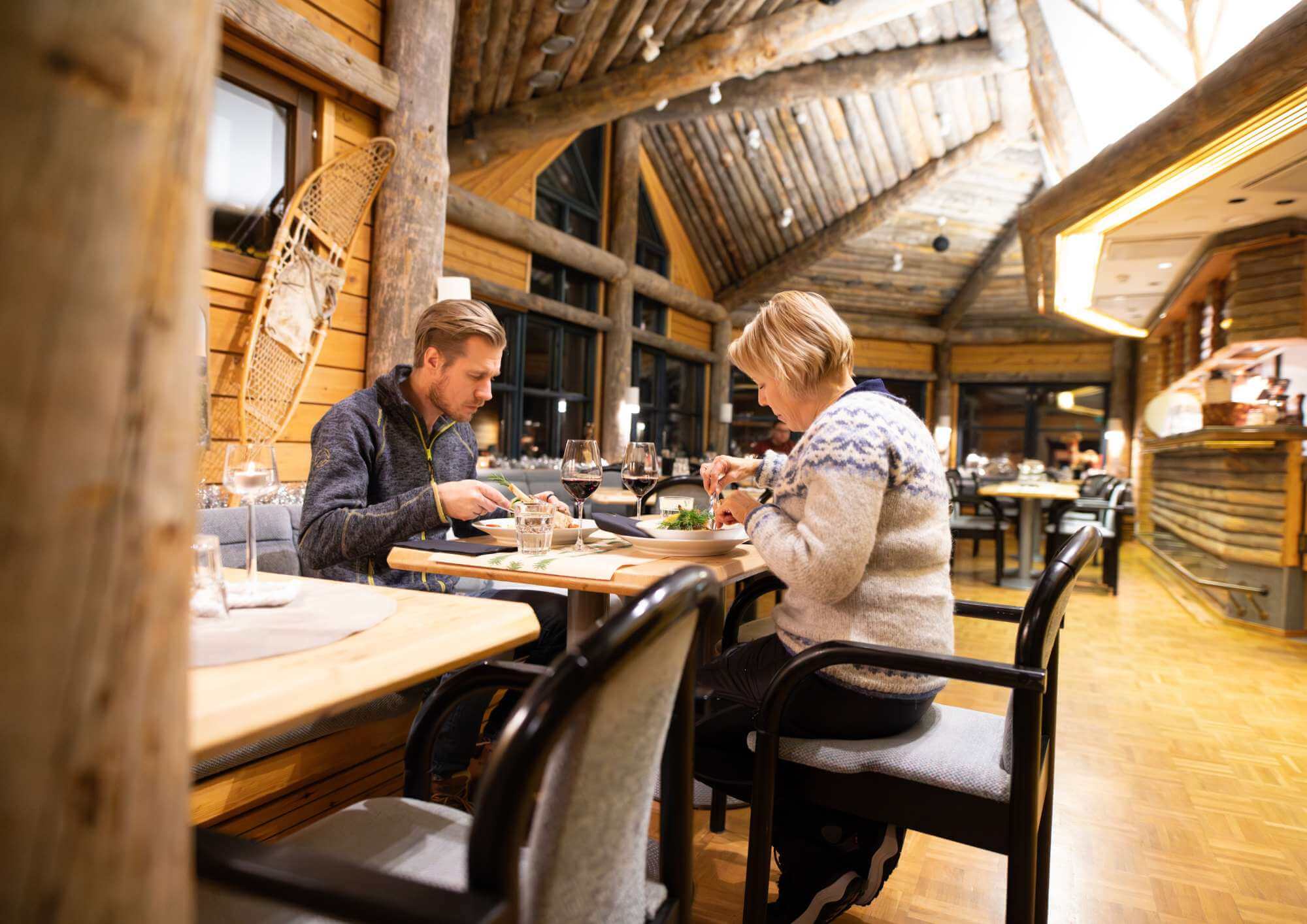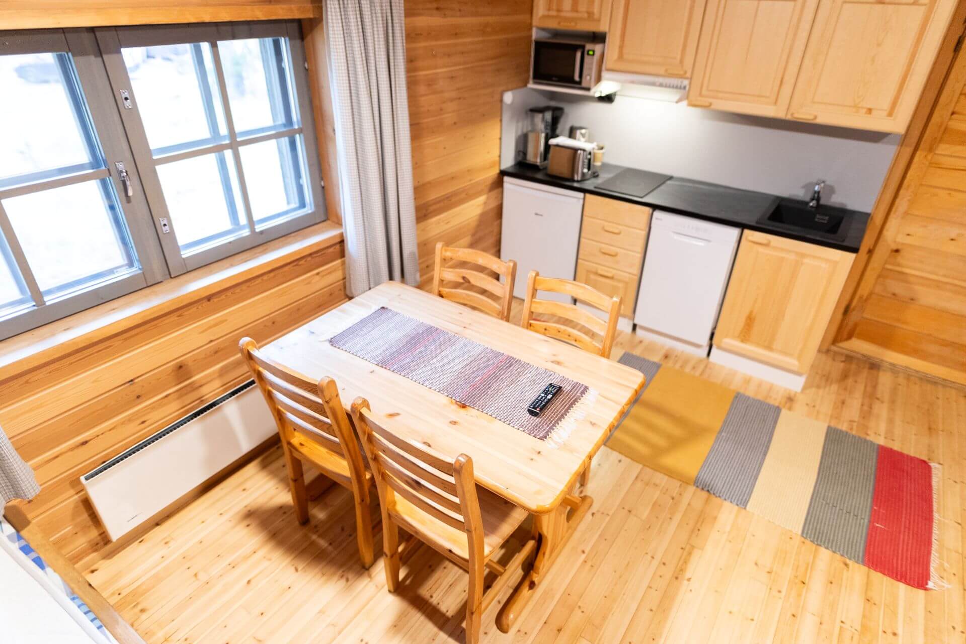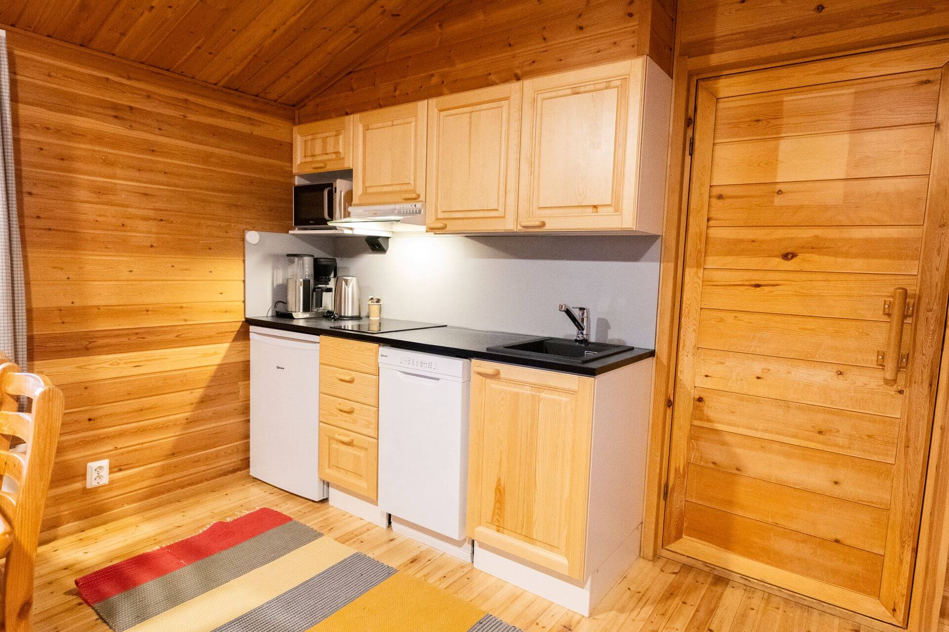 Kiilopään mökeissä on kaikissa oma sauna ja varusteiden kuivauskaappi, joten pääset kuivin varustein päivän seikkailuihin.